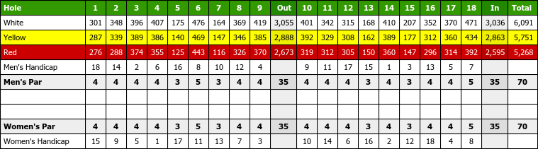 50 Layout 45 Friendliness 50 Pace 45 Amenities 45 1000 Recommend this course 2 out of 2 reviews Read Reviews About Holes 18 Type Private Par 71 Length 6482 yards Slope 135 Rating. GolfNow Helps Golfers Find Great Deals on Tee Times. MScorecard is the ultimate golf scorecard statistics and GPS software.
